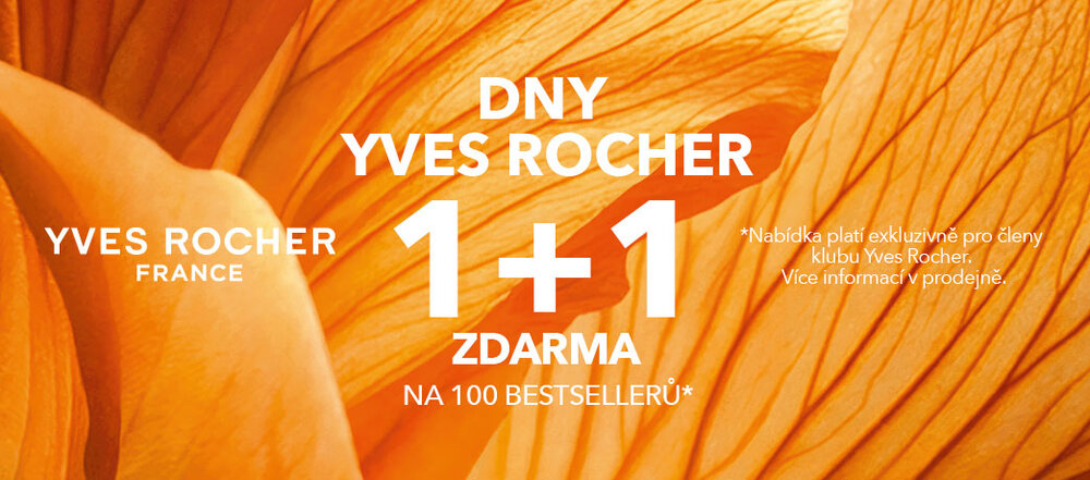 Využijte nabídku 1+1 zdarma na 100 bestsellerů od rostlinné kosmetiky Yves Rocher! K nákupu jednoho z vybraných produktů získáte druhý ve stejné, nebo nižší hodnotě zdarma. Nabídka platí pro stávající i nové členy klubu Yves Rocher od 20. 4. do 26. 4. 2026.