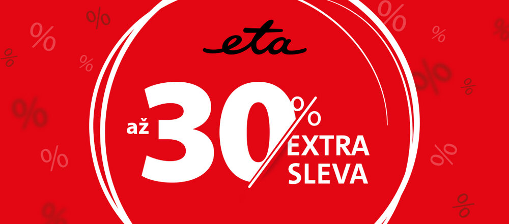 Už jste o tom slyšeli? Je tu oblíbená akce EXTRA SLEVA! Šance ušetřit je opravdu velká, protože můžete pořídit vybrané elektro se slevou až 30 %. Nakupte na e-shopu ETA.cz nebo ve značkových prodejnách ETA a vybavte si domácnost opravdu výhodně.