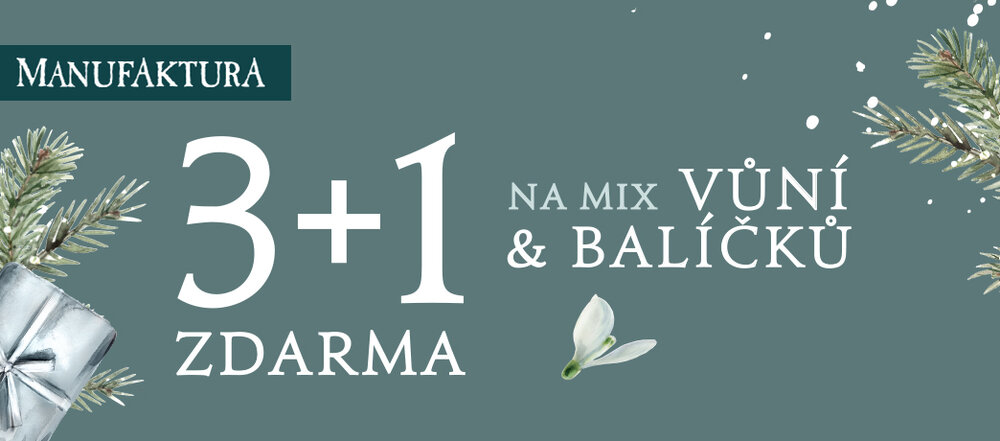 Využijte speciální akci 3 + 1 zdarma na vybrané dárkové balíčky a vůně.
