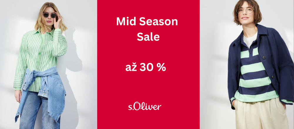 Mid Season Sale v s.Oliver je tady a přináší slevy až 30 % na vybrané kousky. Ideální čas doplnit šatník o nové jarní outfity. Akce platí jen do 10. 5. 2026, tak ať vám nic neuteče. Pospěšte si do prodejen s.Oliver.