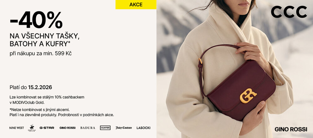 Sleva 40 % na tašky, batohy a kufry při nákupu za min. 599 Kč. Neváhejte, sleva se vztahuje i na zlevněné produkty! Akce platí do 15. února v prodejnách CCC