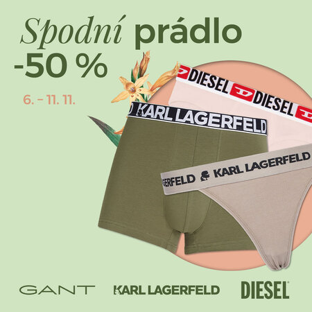 Oblíbené spodní prádlo GANT, KARL LAGERFELD a DIESEL nyní se slevou 50 %. Prémiové materiály, elegantní design a maximální komfort. Pořiďte si luxus za dostupnou cenu! Akce probíhá 6.– 11. 11. na VERMONT.cz a v našich prodejnách.