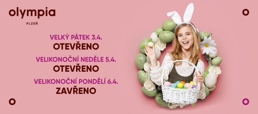 na Velikonoční pondělí 6. dubna je centrum Olympia Plzeň uzavřené.