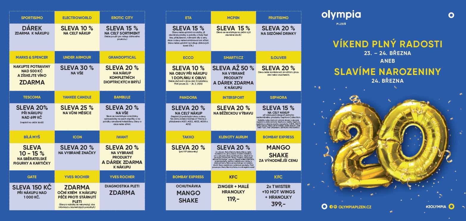 Olympia Plzeň zve všechny na Víkend plný radosti. Přijďte si užít víkend a oslavte s námi narozeniny! Víkend jen pro vás!